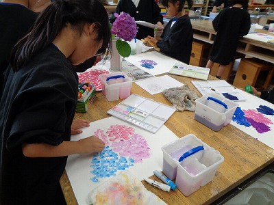 図工は、今日からアジサイをモチーフにした作品作りです。