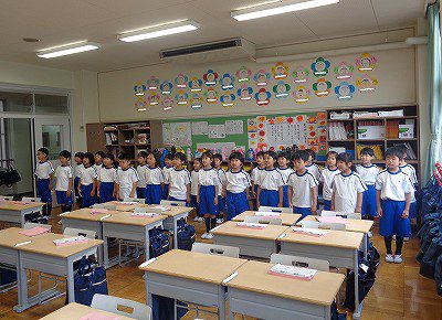 トンネ小学校の皆さんに、気持ちが伝わるご挨拶ができるようにがんばっています。