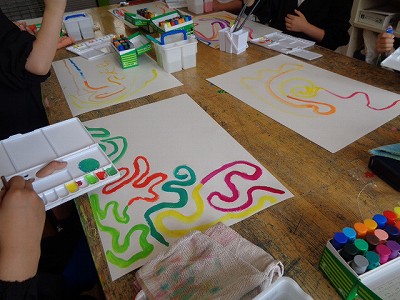 その後は、勢至丸さまの前のあじさいを見て、それぞれ思いついた方法で、アジサイの絵も描き進めていきました。来週には完成する予定です。