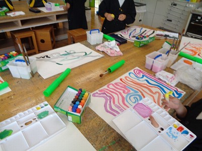 線が交わらないように、そしてかすれたらちがう色に、この二つのルールで筆を動かしました。
