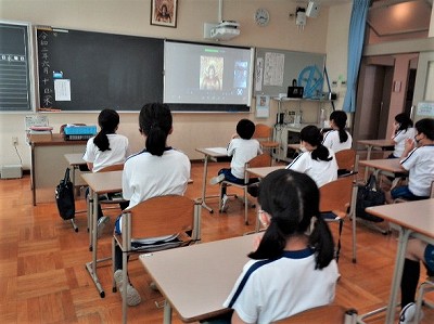 今日は文教小学校開校以来のリモート配信による放送礼拝が行われました。校長先生からマスクを付けることやさわいだりしないことのお話がありました。