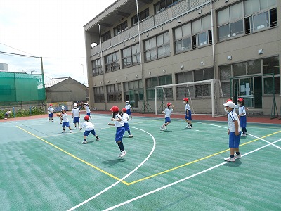 自由帳をしたり、エイゴビートの歌にチャレンジしたり、ボール投げをしたり、ドッジボールをしたりして楽しく過ごしています。