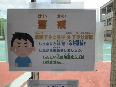 運動場の出入口には、今日のWBGT指数(暑さ指数)がどれくらいかを掲示しています。