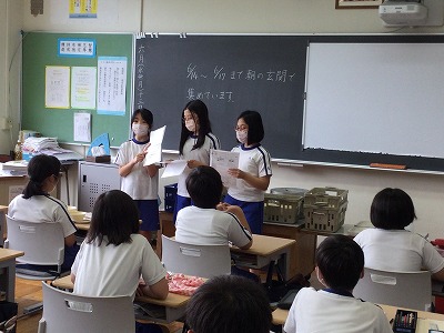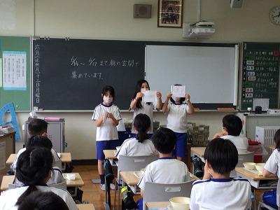 また、募金をしてもらうにあたって、それぞれのメッセージを書いてもらい、それをボランティアメンバーで“メッセージボード”にまとめる計画について、ランチタイムの時間に、各学年の教室へ説明に回りました。
