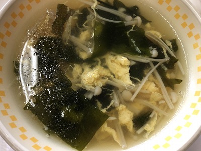 ☆ わかめとえのきの入った卵のスープです。