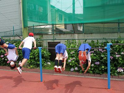 体育の時間も休み時間も「鉄棒」や「うんてい」の練習をがんばっています。