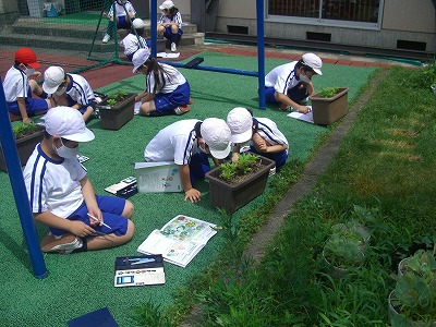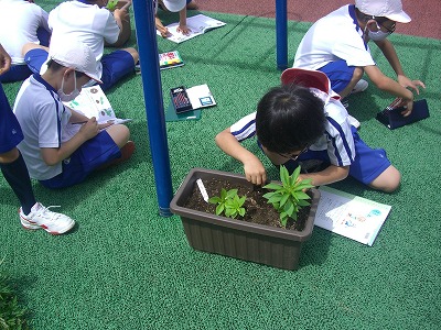 今日の理科は、ヒマワリとホウセンカの観察です。