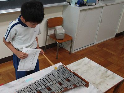 迷子のアナウンスは、卓上鉄琴を使って「ピンポンパンポーン」から始まります。