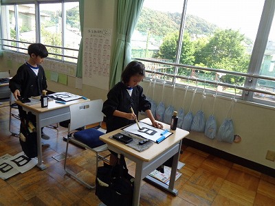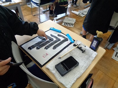 3回目の習字なので、準備はとってもスムーズ、姿勢からも集中している様子がわかりました。