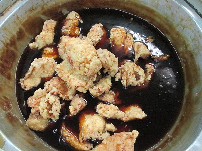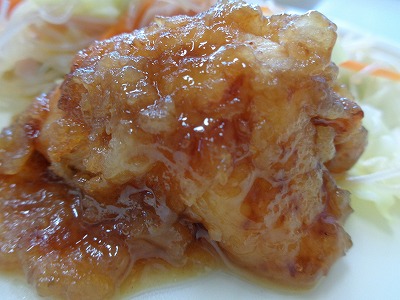 ☆ 鶏肉の治部煮は、揚げた鶏肉に、甘辛いとろみをつけたタレをつけています。