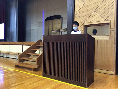 そんな休み時間、体育館では今週末の発表会に向けて、代表の二人の人がスピーチの練習に励んでいました。