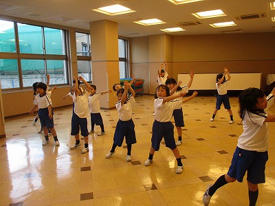朝体操の始まりです。まずは、ラジオ体操第一・第二です。