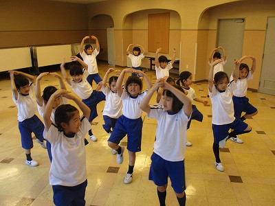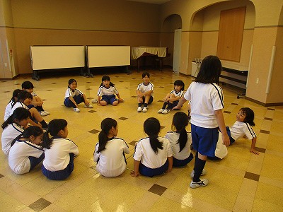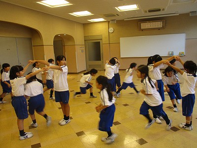 今日は、朝体操では久しぶりに「ロンドン橋落ちた」をしました。