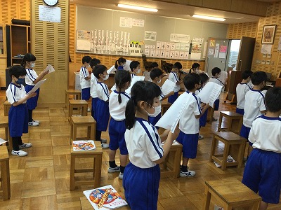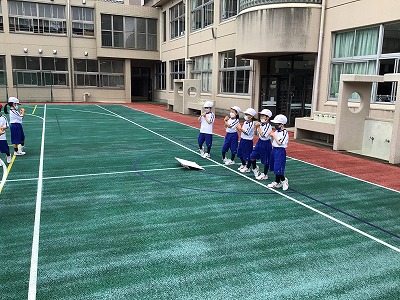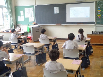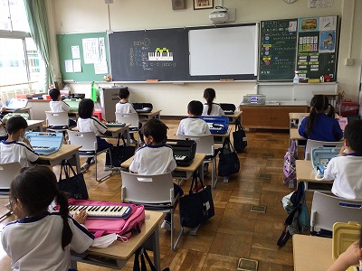 中間休みに少し降っていた雨がやみ、1年生の気持ちが届いたのか、晴れてきた4時間目。