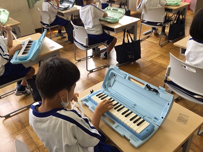 “2つの山(黒鍵)のおとなりは~”の歌で始まる「♪どこどこど」で、歌担当とけんハモ担当に分かれて歌ったり、音楽に変化を付けた「♪まほうのど」で、吹き方を変えてみたりと、「ド」の音をいろいろに楽しみました。