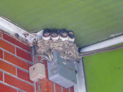 古川町通りには、いくつかツバメの巣があります。