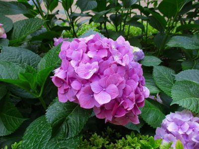 小学校玄関前のアジサイが満開です!