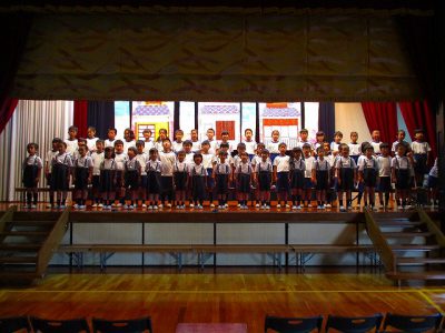 今朝も1年生3年生が、合同合唱練習をがんばっていました。