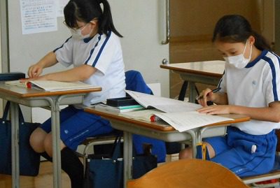 また、今日は「♪ぼくらの日々」の歌唱テストを行いました。順番を待つ間、この「♪われは海の子」の楽譜を写す・写譜に取り組みました。
