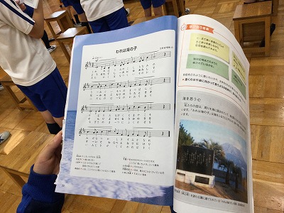 『にっぽんの歌』と題して、6年生では「♪われは海の子」を紹介しています。