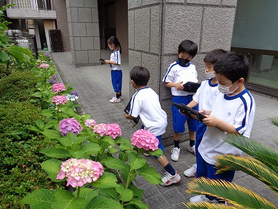 その後は「あじさいカメラマン」として、紫陽花の観察とiPadで写真撮影を楽しみました。