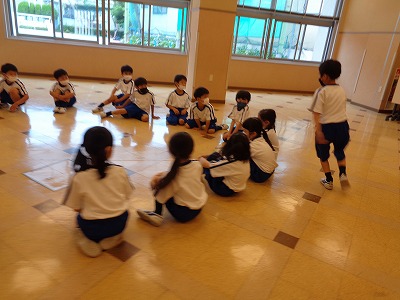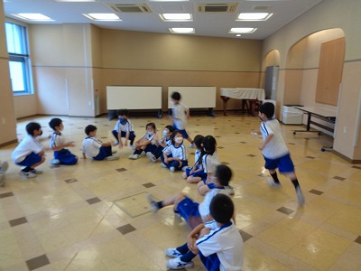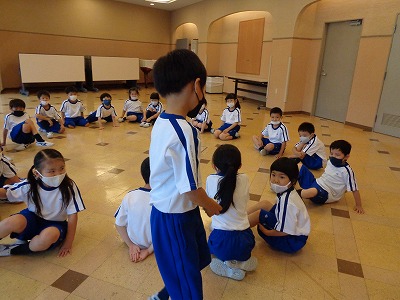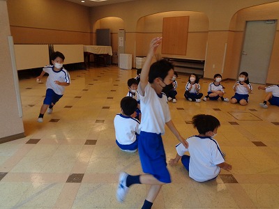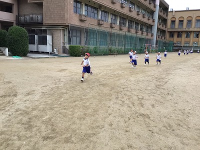 湿度の高い朝になりました。時間になると、日直さんが準備体操をスタートしていました。今日も、無理のないペースで2周か、3周かを決めて走りました。