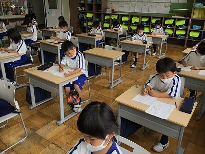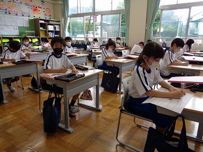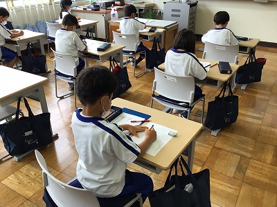 書写の学習です。お手本を見て、きれいに書き写す練習をしました。