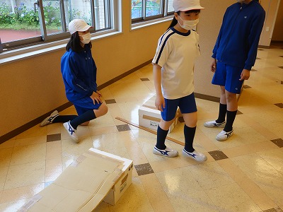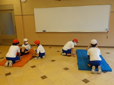 今日が全国体力・運動能力調査の最終です。和の部屋で「上体起こし」「長座体前くつ」そして「反復横跳び」をしました。