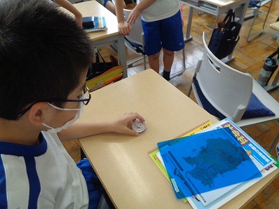 社会の学習で、方位磁針を使って4方位を確認しました。