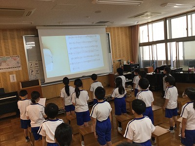 今日も「心から心へ」で、みんなの歌声を一つにして、音楽を始めました。