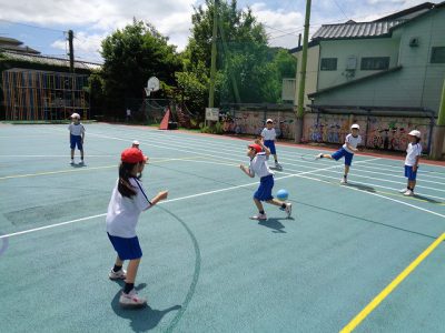 捕ったらすぐに投げることや、1バウンドセーフなどの細かいルールも理解し、仲良く元気に活動しています。