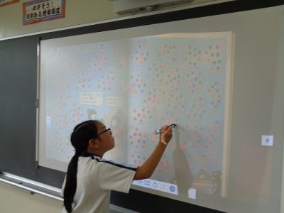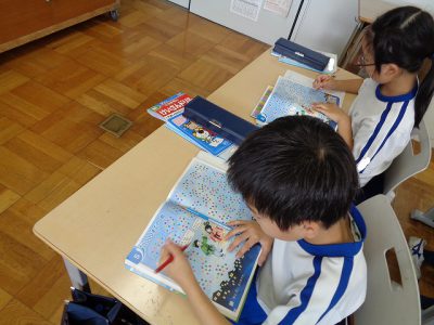 まずは、教科書の挿絵をもとに星の数を予想し、工夫して考える活動です。