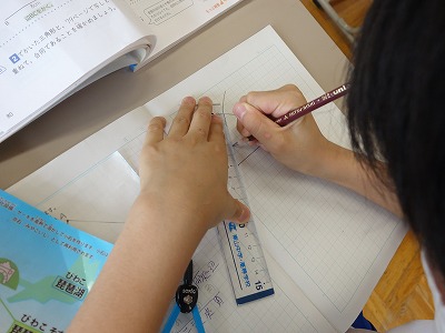 発展コースの児童は、作図のおさらいプリントをした後、練習問題に取り組みました。