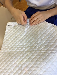 【家庭科「ナップザック実習・ていねいな仕事」】