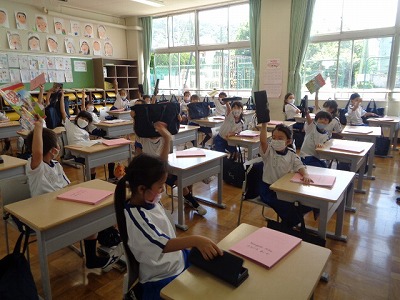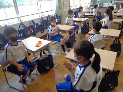 準備体操をテキパキと進めてくれた3チームの日直さんは、準備体操ボードも忘れず持ち帰ってくれました。また、中間休みには、アサガオの水やりもしっかりやってくれました。