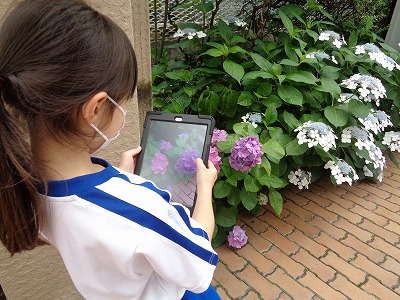 This week, the hydrangeas are blooming outside in the school yard.