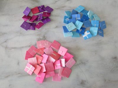 みんなが作った紫陽花を貼り合わせて、完成させる予定です。