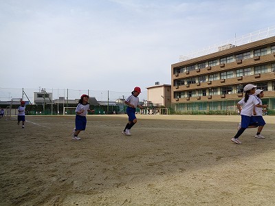 快晴の中、5年生のスピードに刺激を受け、気持ちよく走る姿が見られました。
