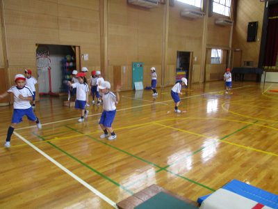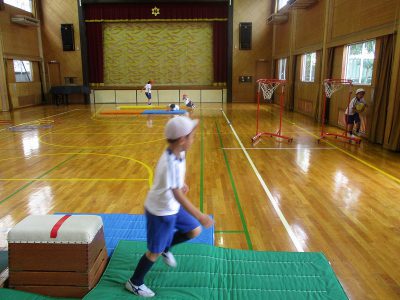 マット、跳び箱、ボール投げ、縄跳び等、順番に取り組みました。