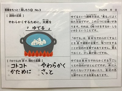 今日の調理の言葉は「ゆでる」