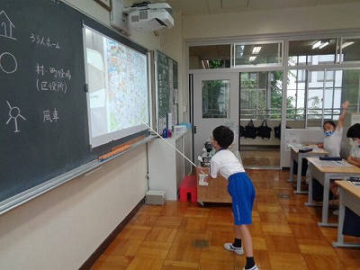 社会の学習では、学校のまわりの学習のまとめや地図記号の復習をしました。地図上をたどりながら、答はどの場所なのかを考えました。
