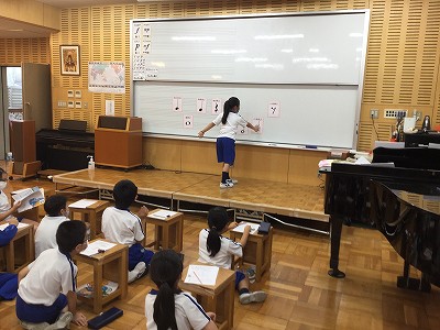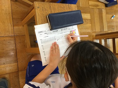 身につけた言葉をフルに使って、“楽譜を読む、音符を書く”の活動を進めています。