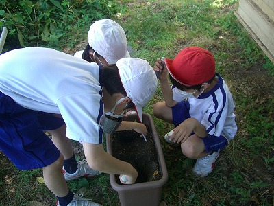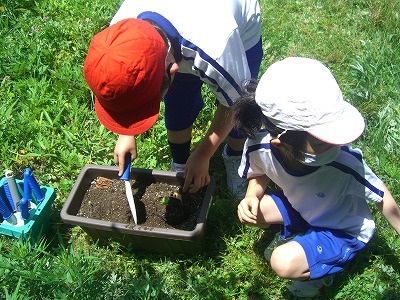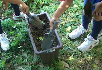 理科は「ホウセンカ」の観察をしてから、プランターに植えかえをしました。