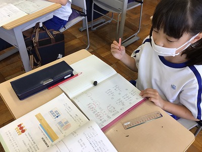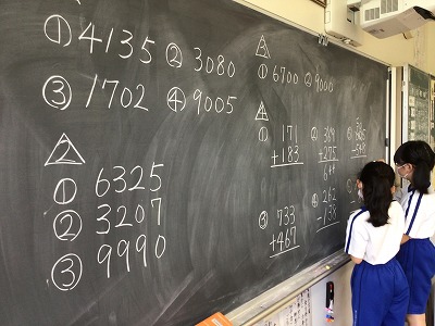 計算や九九のきまり、数直線は完璧でしたが、かさや長さの単位変換に苦戦している姿が見られました。