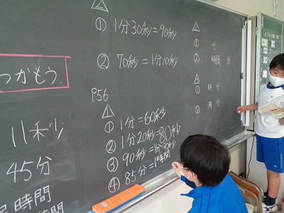 その後、時間の単位換算や時刻と時間を答える問題に取り組みました。