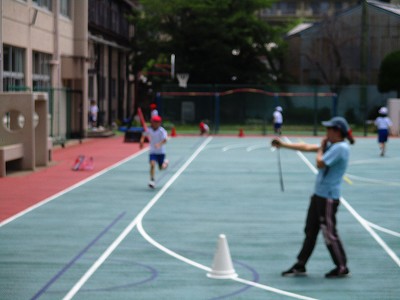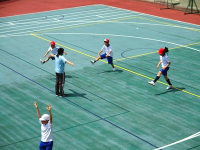運動場をめいっぱいに使って、スキップ、サイドステップ、大股歩行、ダッシュなどなど。