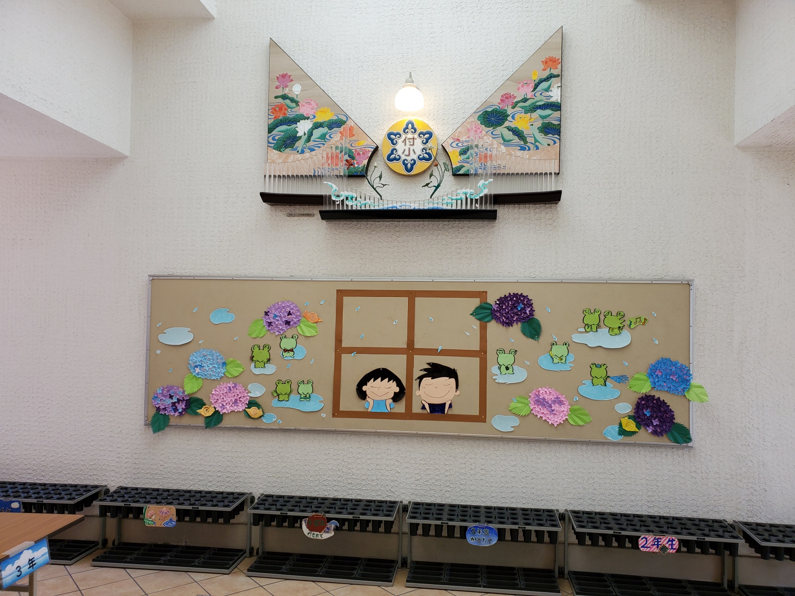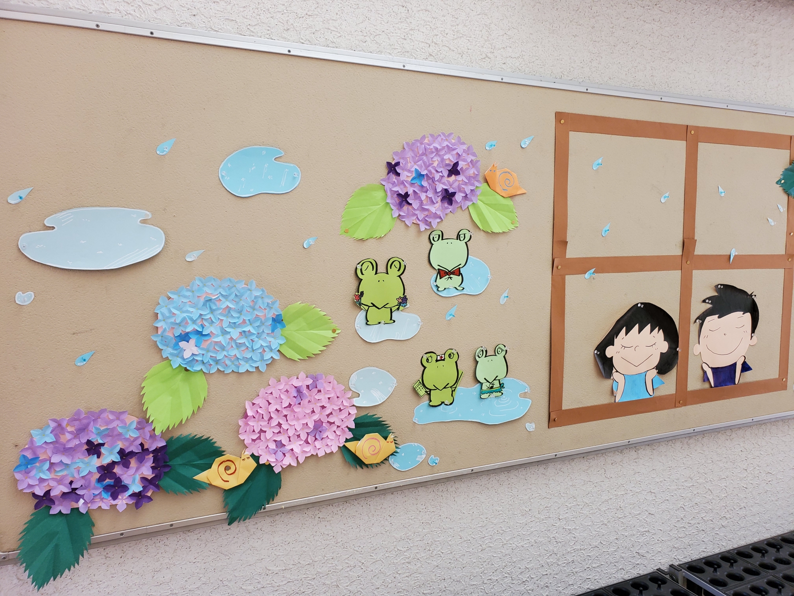 図工の宮川先生が時間をかけ、心を込めて制作した「6月~梅雨バージョン」です!