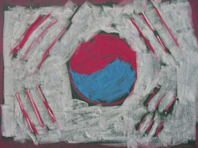 講座が始まる前に、メンバーの一人が韓国の国旗を黒板に描いていました。