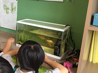 また、生き物係さんもお世話をしている様子がありました。毎日欠かさずえさやりを担当しています。