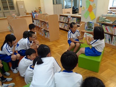 5時間目の図書の時間です。読み聞かせ係さんが、みんなの希望を取り入れた選書で「いいからいいから」を読み聞かせしました。